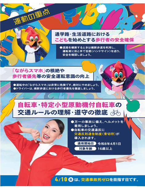 R8年4月6日から4月15日までの間、春の全国交通安全運動が行われます。